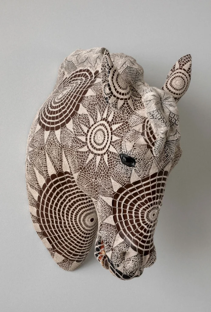 O seu percurso não foi linear, mas sempre intuitivo. Dos primeiros trabalhos em vidro e crochet aos grandes projectos colaborativos de hoje, Vasconcelos construiu uma carreira que celebra a herança portuguesa – os azulejos, os bordados, as rendas – sem cair no folclore nostálgico. “Não és dissociável do teu país, da tua cultura. Podes sair, mas as referências ficam”, disse ela ao Gerador, sublinhando como Lisboa, com o seu atelier de 60 pessoas, é o epicentro da sua criação. Ali, artesãos, engenheiros e performers tecem uma rede viva, onde a arte não é solitária, mas colectiva, como uma festa de família expandida.