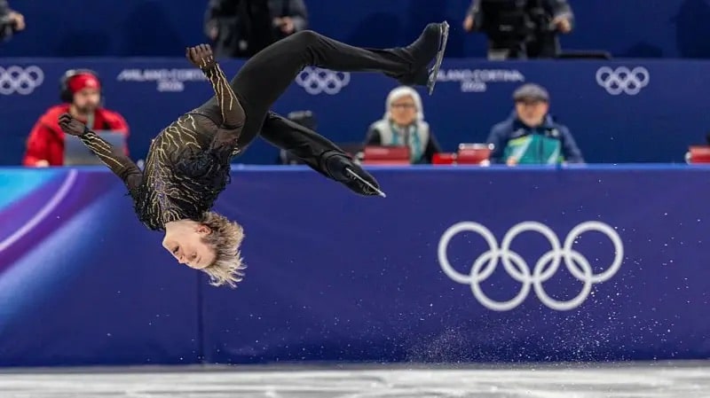 O “salto proibido” de Ilia Malinin: Na patinação artística, o americano Ilia Malinin, de apenas 21 anos, paralisou a arena ao executar um backflip, que foi proibido por 50 anos e liberado pouco antes da competição começar (1976- 2026), por ser considerado perigoso demais.