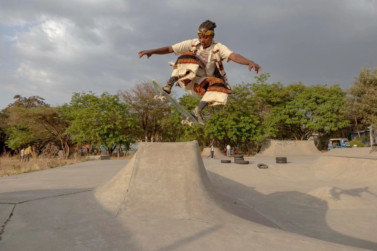 A capital etíope, Adis Abeba, é uma metrópole vibrante que cresce a um ritmo acelerado, mesclando tradições milenares e uma cultura urbana emergente. Num país onde desportos como a corrida e o futebol dominam, o skate chegou como novidade, conquistando jovens que procuravam uma forma própria de expressão. Sem apoio oficial no início, os primeiros skaters criaram uma cena autêntica e as suas próprias rampas.