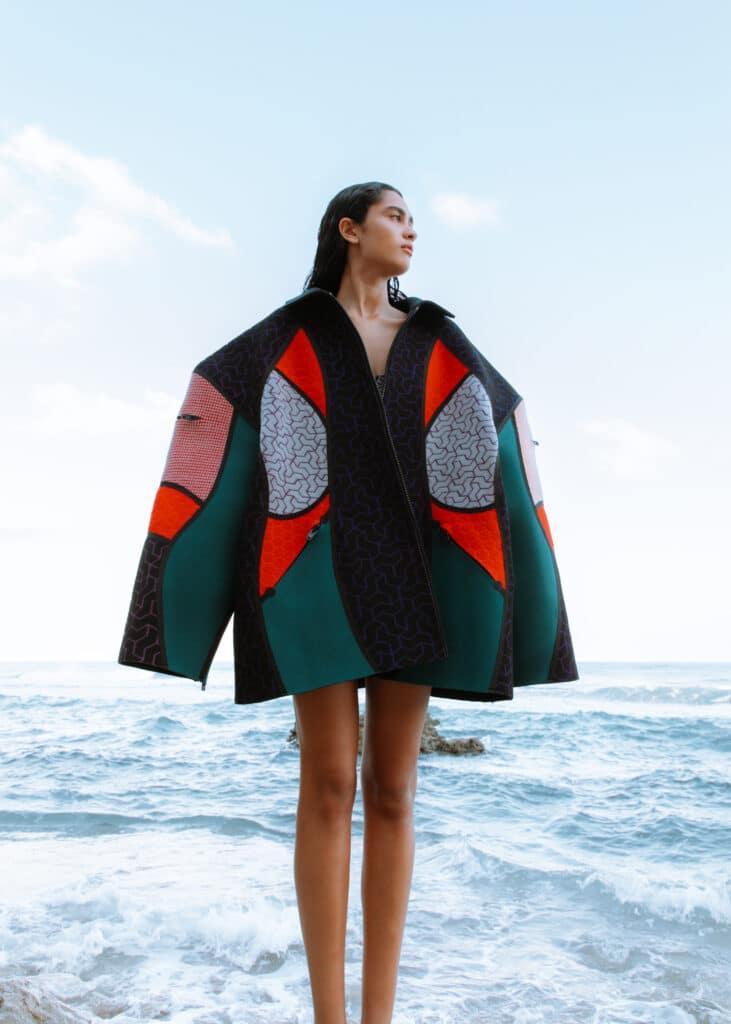 “O meu trabalho começou com uma pergunta: o que acontece a um material quando ele deixa de servir o corpo durante o surf e passa a ser uma declaração de design por si só?”