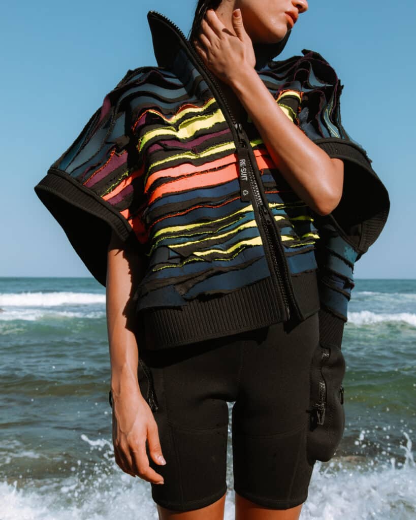 O neoprene, material das roupas de surf, é durável, mas não biodegradável e altamente poluente na sua produção. Foi a partir dessa constatação que Amit decidiu transformar o que seria descartado em design funcional e estético.