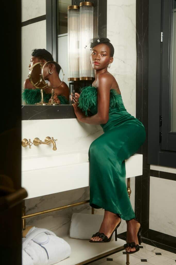 – Acessórios: Sapatos de salto ou mules sofisticados, uma clutch pequena e joias delicadas complementam o look.