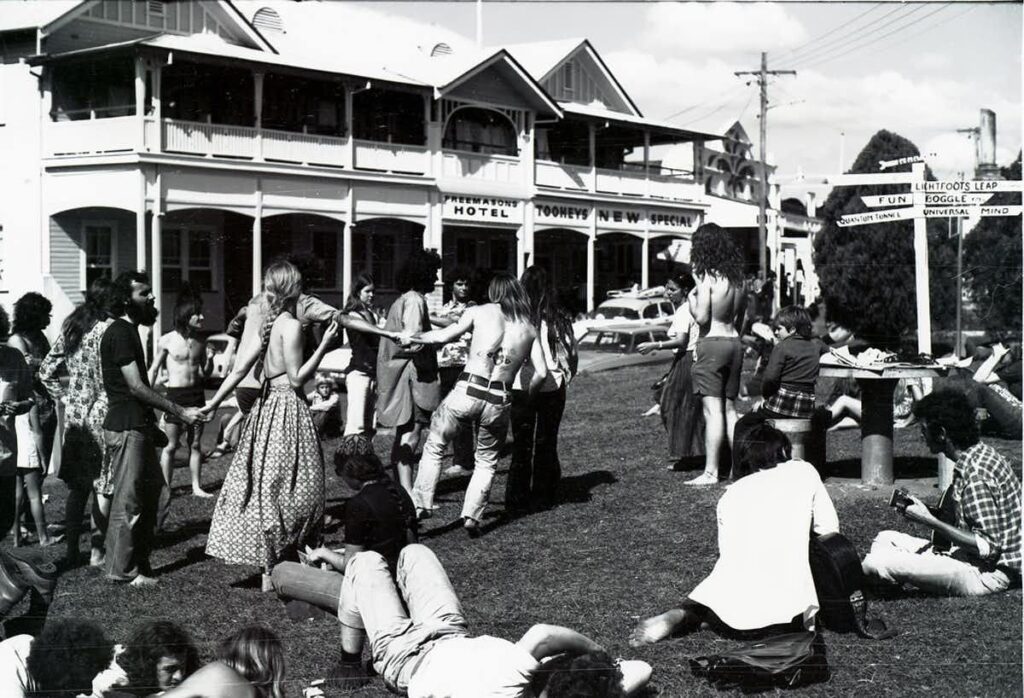Tudo mudou em 1973, quando a Australian Union of Students (União de Estudantes Australianos) organizou o Aquarius Festival em Nimbin. A vila, afastada das estruturas urbanas que os organizadores protestavam, recebeu mais de 10.000 pessoas durante dez dias de celebração da música, arte e sustentabilidade.