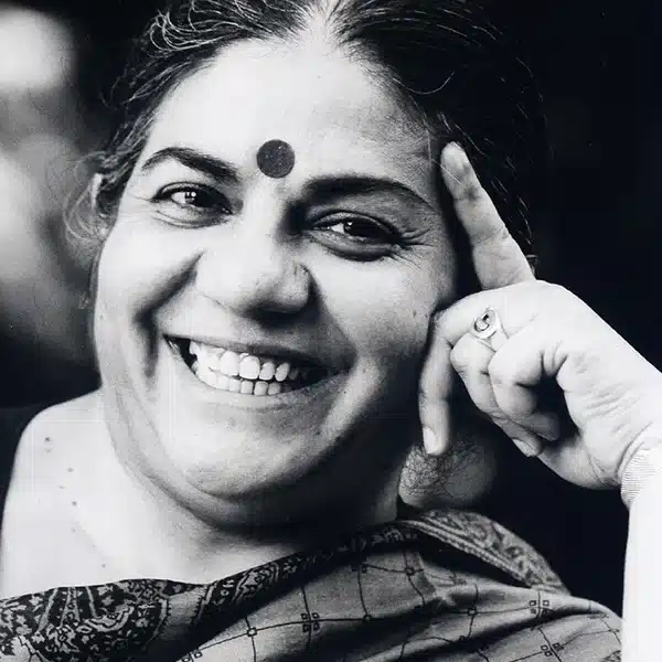 Vandana Shiva nasceu a 5 de Novembro de 1952 em Dehradun, nas encostas do Himalaia, no norte da Índia, rodeada por árvores, rios e campos — a natureza foi a sua primeira escola. Filha de um conservador florestal e de uma mãe ligada à agricultura, a sua infância foi marcada por um contacto íntimo com o mundo natural que mais tarde definiria a sua vida.