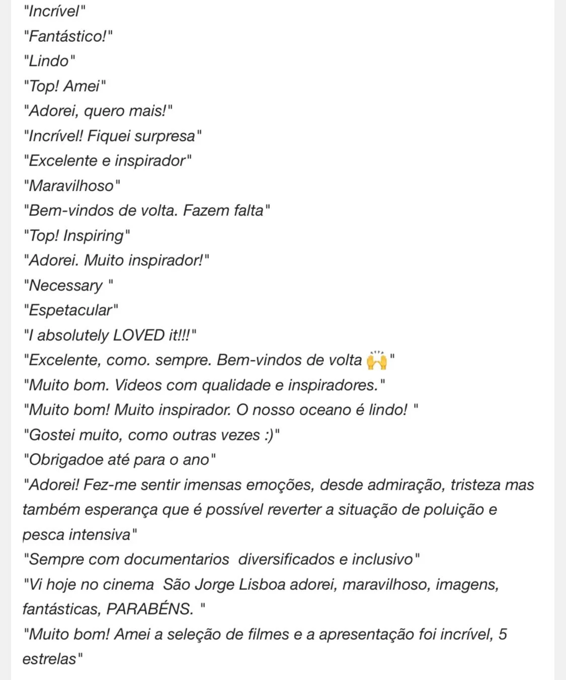 Além dos cinco filmes em exibição, a estreia contou, ainda, com a presença de Alex Cornelissen, CEO da Sea Shepherd Global, e de Joachim Hellinger, da Moving Adventures, bem como de cineastas internacionais e criativos de toda a Europa, que se juntaram para celebrar o poder do cinema como ferramenta de sensibilização e mudança.
