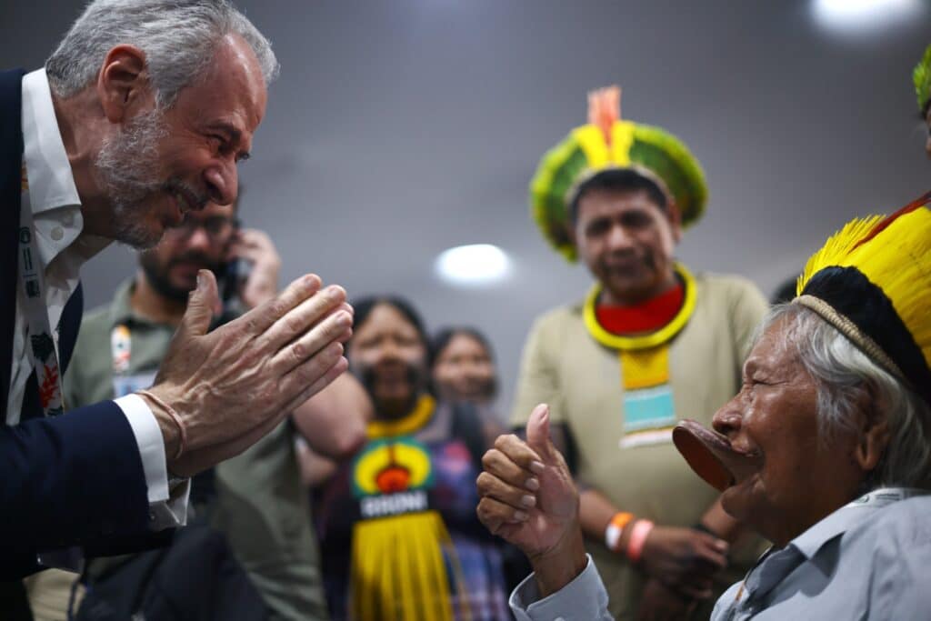 Além disso, no segundo dia da COP30, a Baía do Guajará virou cenário de uma das manifestações mais simbólicas do evento: a Barqueata da Cúpula dos Povos  com 200 embarcações que atravessaram cerca de 30 quilômetros. Entre cantos, cores e manifestações culturais, as embarcações reuniram cerca de 5.000 pessoas para lembrar ao mundo que a Amazónia não é abstrata  e levaram também críticas diretas ao processo oficial. Como afirmou o cacique Bepita Kayapó, da aldeia Pinknhtykre: “Lá na COP30, eles debatem o que vai acontecer com os territórios indígenas e com as florestas, lugares onde a gente mora e a gente cuida. Não são eles que estão lá, para depois virem dizer que cuidam.”