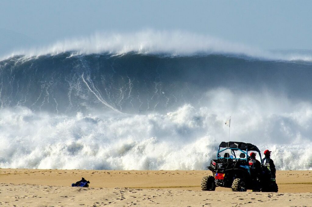 Surfar a Nazaré é enfrentar o imprevisível. Cada sessão exige preparação física intensa, controlo mental absoluto e trabalho em equipa. O resgate por jet ski é parte fundamental da segurança, assim como o trabalho do spotter — o profissional que, no alto do penhasco, monitoriza as condições do mar e orienta a dupla em tempo real, garantindo que surfista e piloto de jet ski estejam sempre em sincronia diante das ondas gigantes.