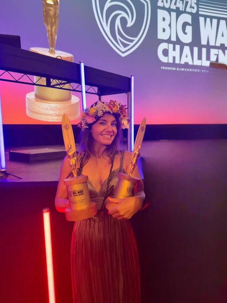 Desde 2011, quando McNamara transformou a Nazaré em sinónimo de conquistas associadas ao universo masculino, a história começou a mudar — e foi Maya Gabeira quem reescreveu este capítulo. A sua trajetória é marcada por diversas superações: após um grave acidente no mesmo local, em 2013, ela não só recuperou fisicamente, como voltou mais determinada do que nunca. Em 2020, Maya quebrou o recorde mundial da maior onda já surfada por uma mulher, com uns impressionantes 22,4 metros, um feito que foi, depois de muito esforço, reconhecido pelo Guinness World Records. Já em 2024, ela sagrou-se campeã feminina da temporada, terminando a sua carreira em grande estilo e reafirmando o seu legado no surf de ondas gigantes.