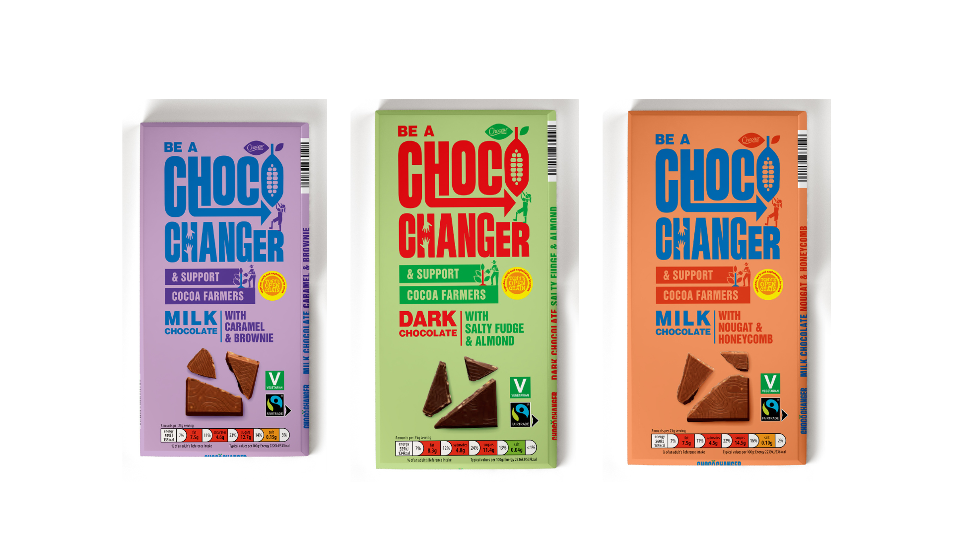 Esse design inusitado não é apenas estético. Ele carrega um significado poderoso — simboliza a desigualdade na cadeia de produção do cacau, onde muitos agricultores recebem uma fatia injusta do lucro, enquanto grandes marcas ficam com a maior parte.
